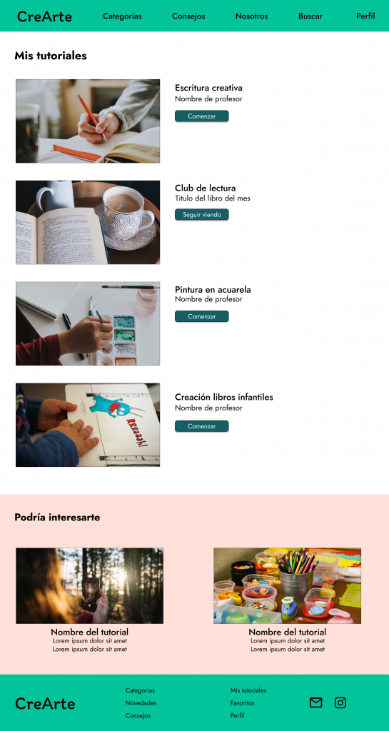 Se hizo un ejercicio de ideación rápidamente, teniendo en cuenta todas las cosas que puede haber en una página de tutoriales y cursos.